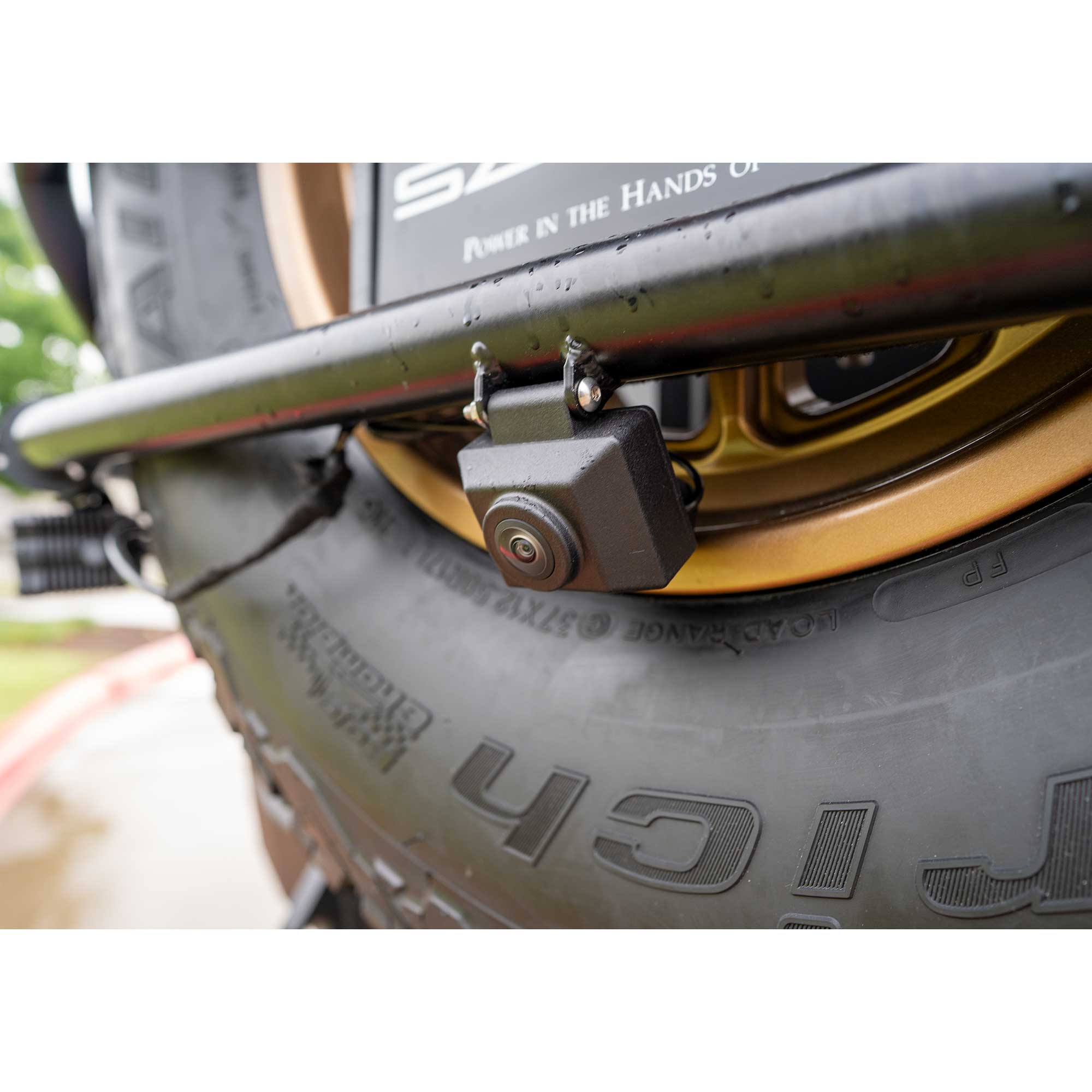 • Reverse camera relocation kit with wiring harness and camera housing