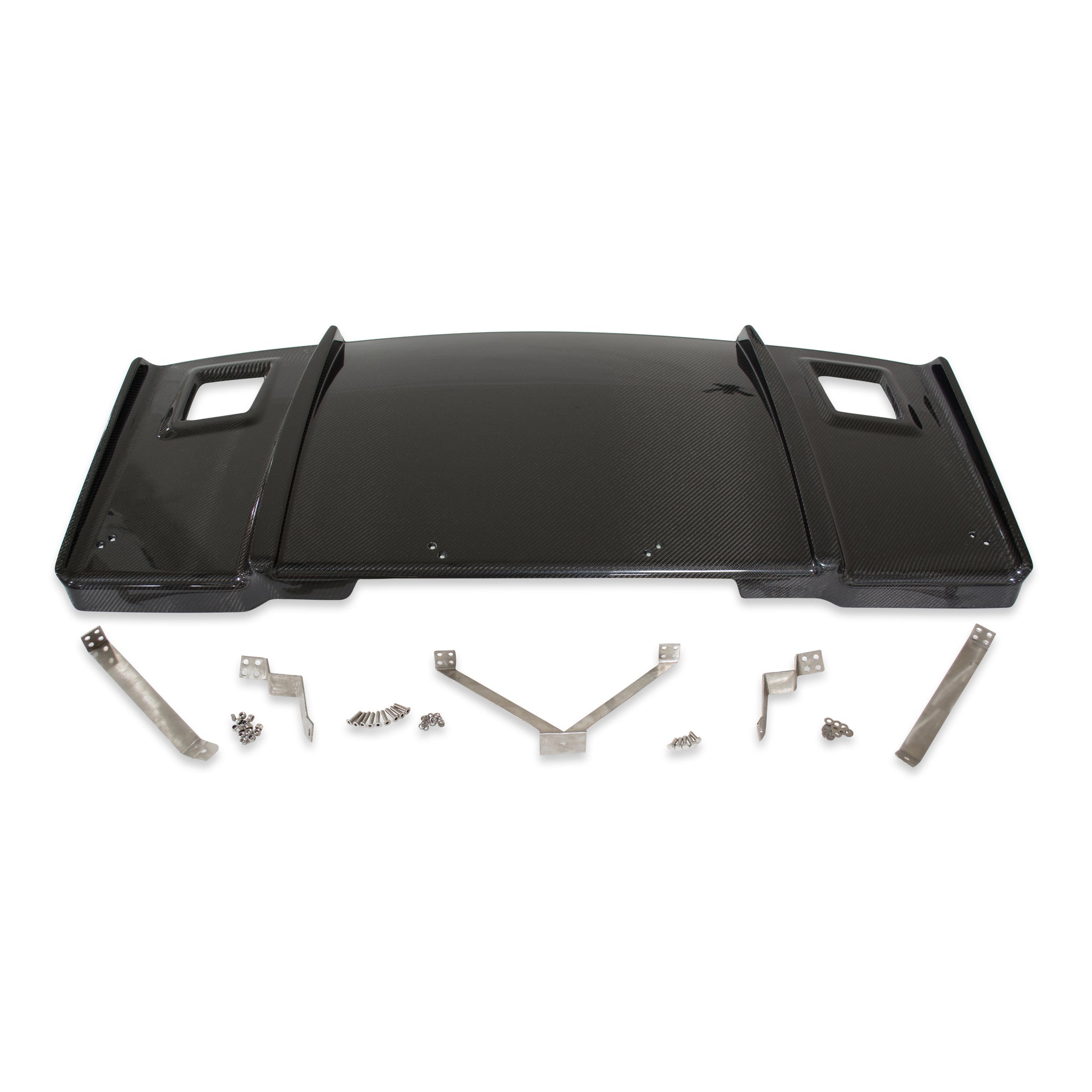 Saleen continually strives to push the envelope for Mustang enthusiasts, and the extreme carbon fiber rear diffuser sets the benchmark for styling and aerodynamics. Made of genuine infused carbon fiber and clear-coated for a show-ready appearance, the rear diffuser gives your Mustang exotic sporty looks. Designed for a perfect fit with pre-drilled mounting holes, the rear diffuser is paintable (with appropriate prep). Only fits Saleen rear fascia and does require exhaust modification.