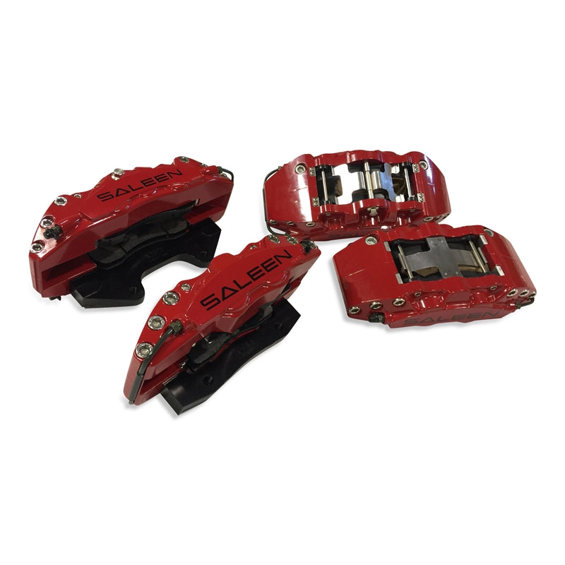High Quality Construction: This Saleen Carbon Ceramic Brake Package is manufactured to exacting specifications. Each brake caliper is precision machined from 6061 forged aluminum and assembled to exacting tolerances to ensure durable performance and perfect fit & finish. The specially formulated Carbon Ceramic rotors are a 2-piece 'hat & friction ring' design that has been proven both on and off the track. Choose from either Black or Red caliper colors.
