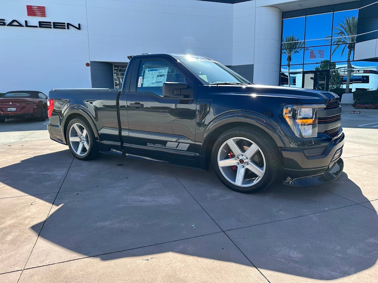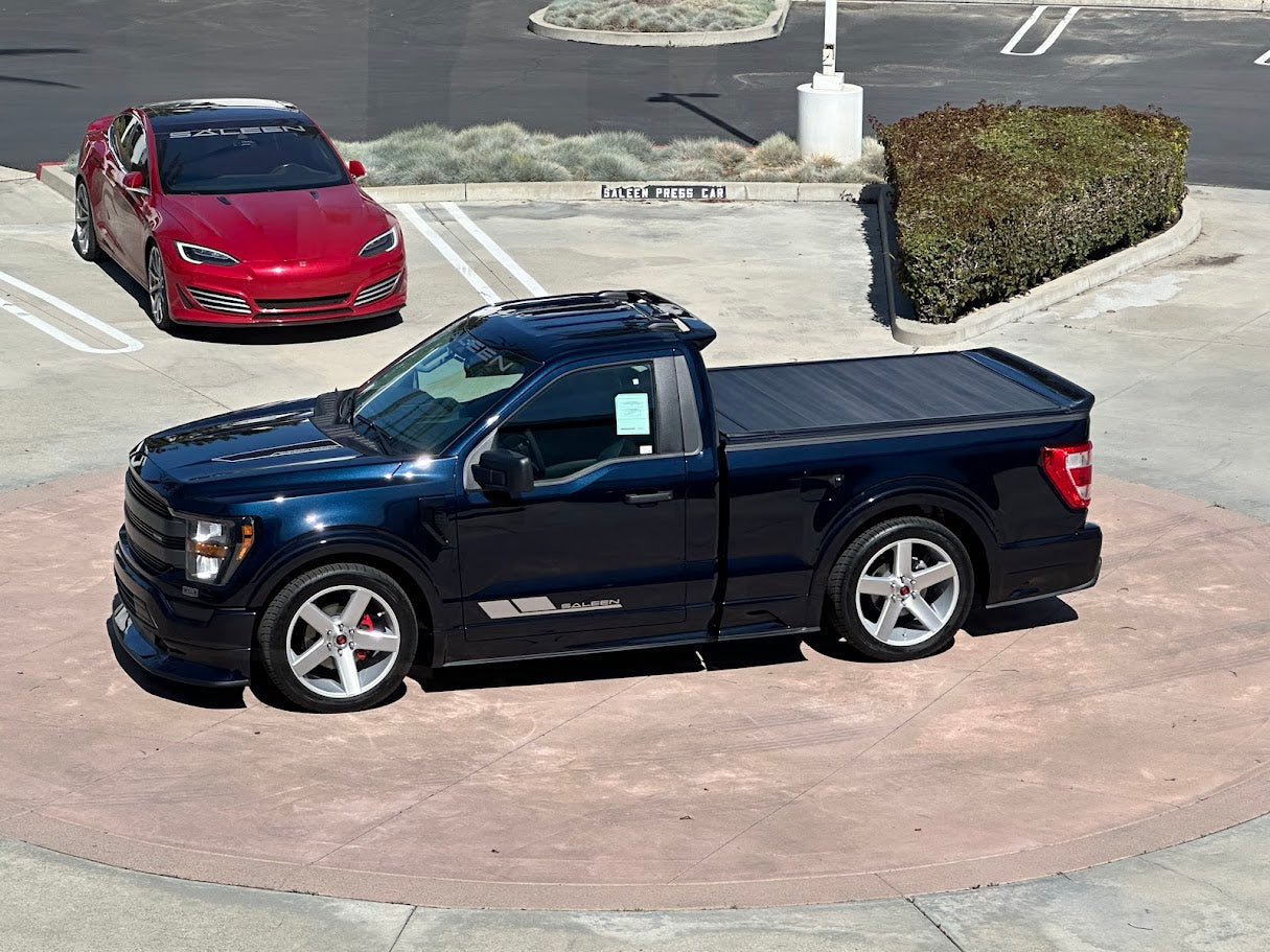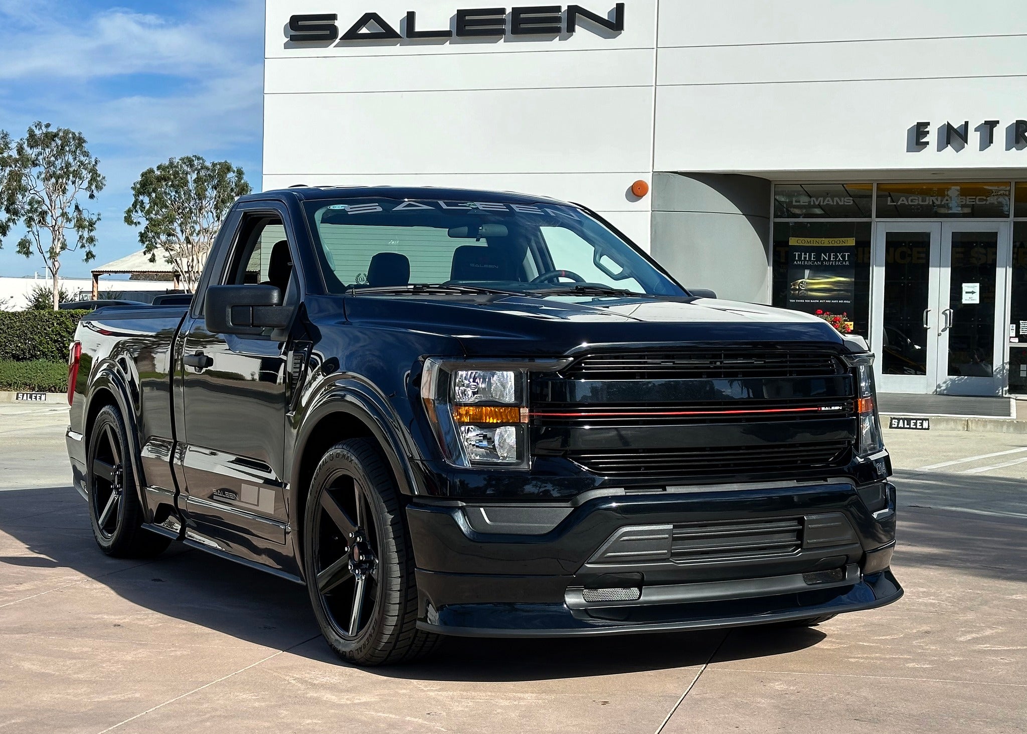 2023 Saleen SporTruck F-150 side profile showcasing 22x9.5 Saleen 5-spoke wheels in chrome finish.
